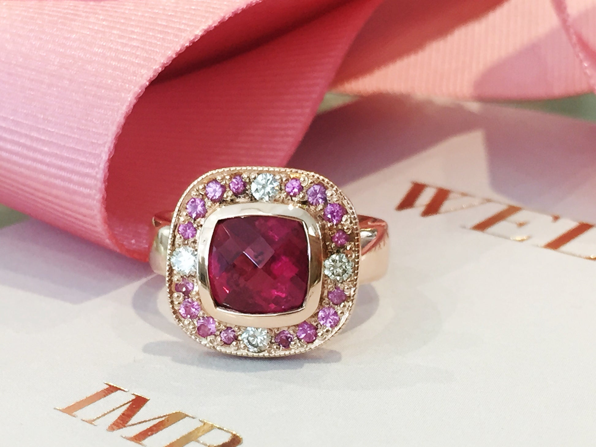 This once off ‘blush’ring is super lush ....almost like a bouquet of flowers on your finger💝I used a pink window cut tourmaline,pink sapphires,Diamonds & rose gold....enough to make anyone ‘blush’.