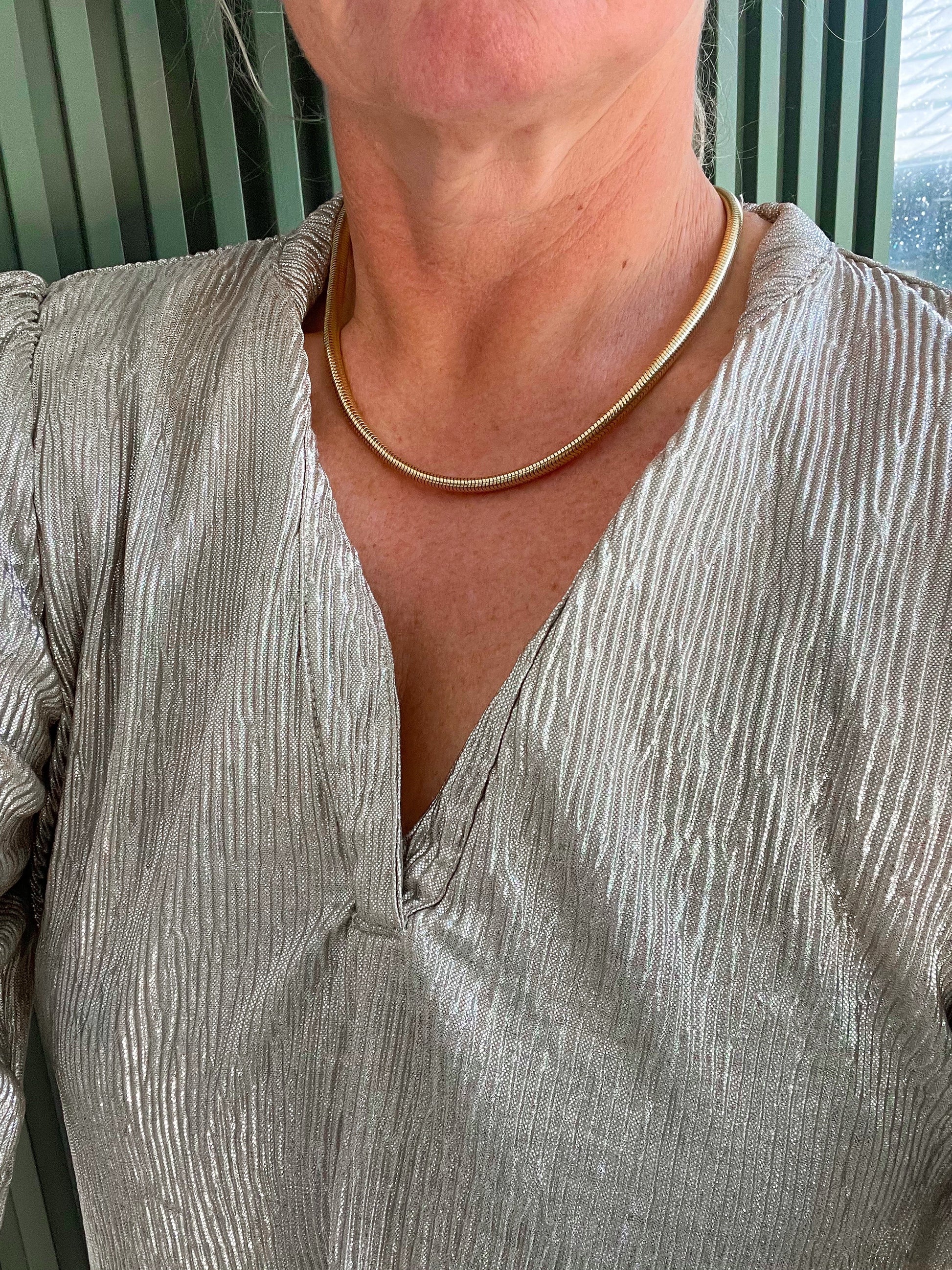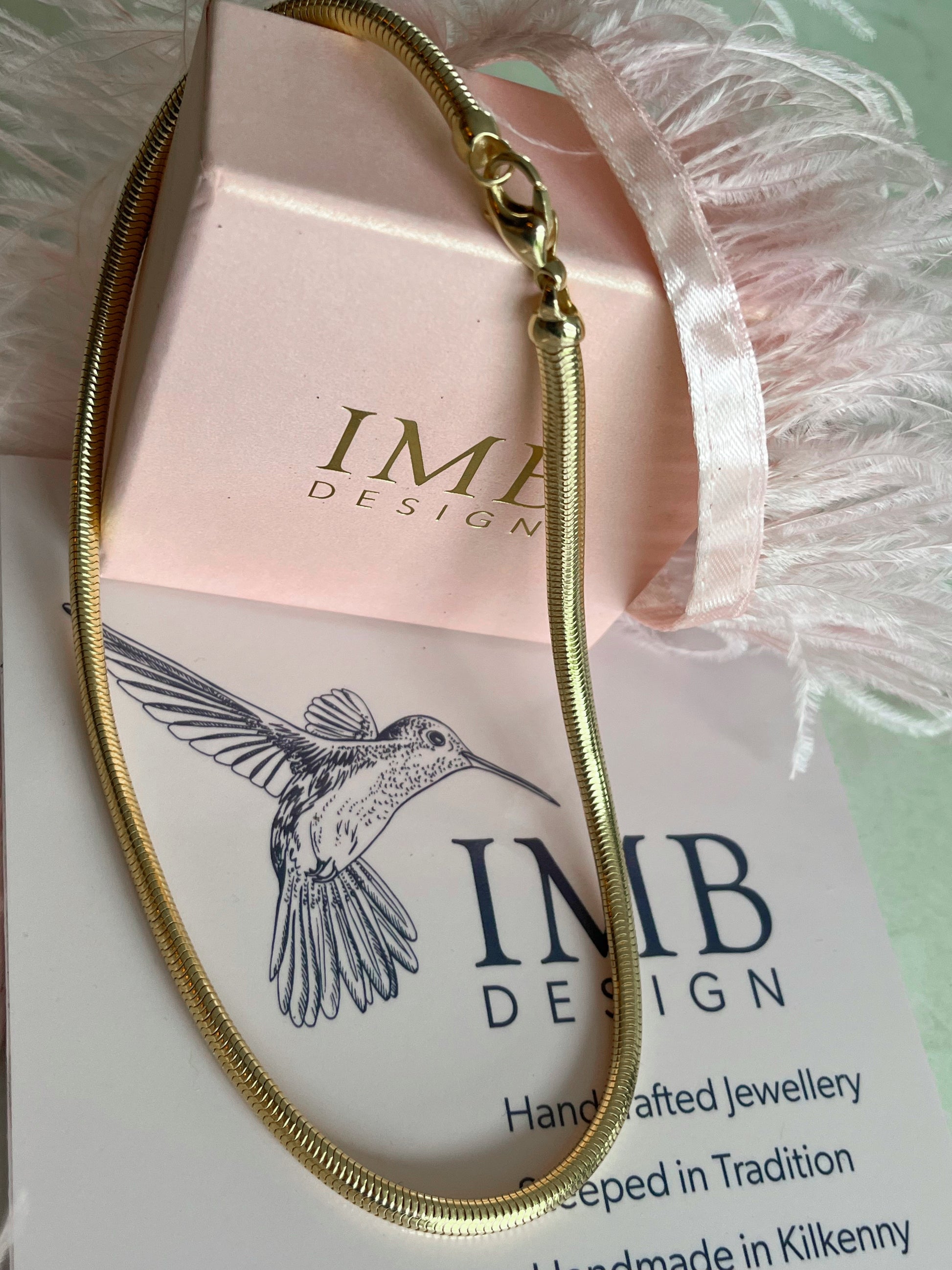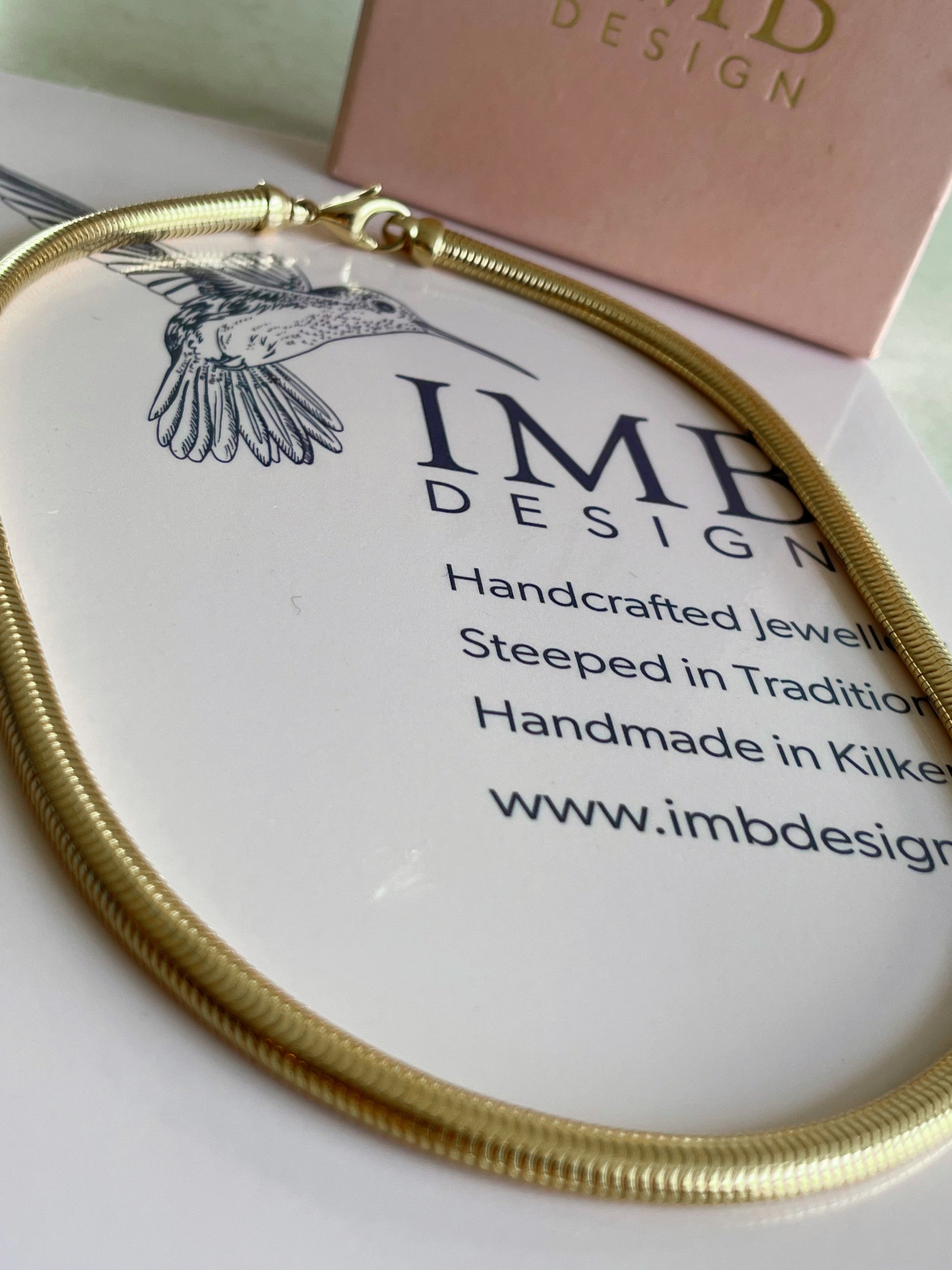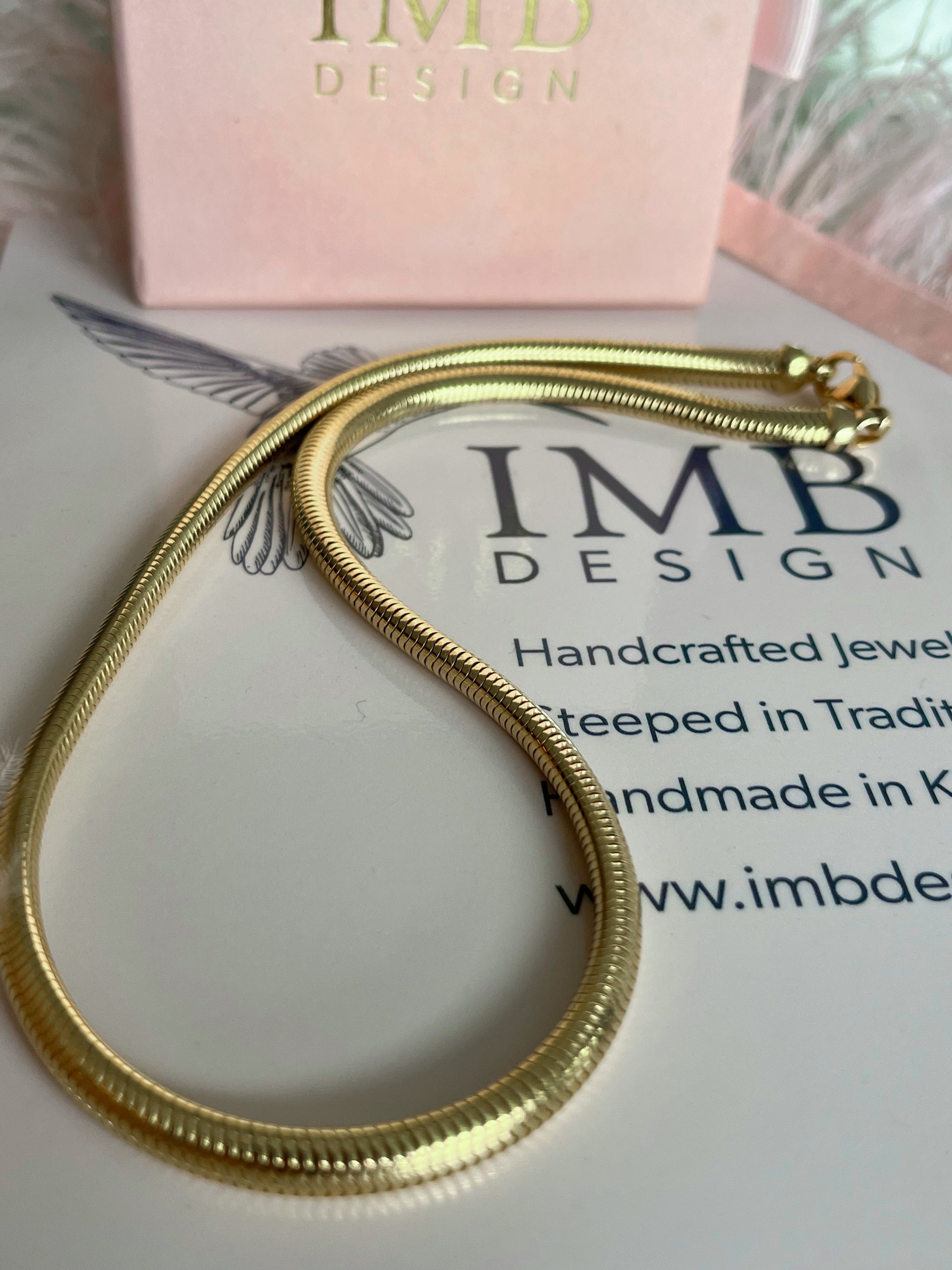18ct solid Gold flexible necklace ...nothing says class more than a solid choker style necklace made in lush 18ct yellow gold ...sits nicely at a length of 17.5" total weight is 69grams